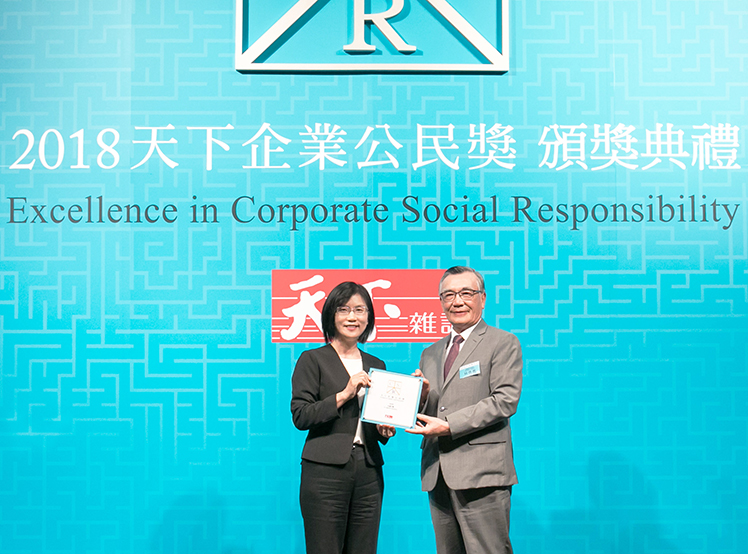 友達榮獲 2018 天下企業(yè)公民獎 ,由友達光電永續(xù)長古秀華 (左) 代表領獎