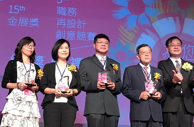 友達榮獲第 15 屆金展獎,由人力資源總部副總經(jīng)理古秀華 (左二) 代表受獎 。 |