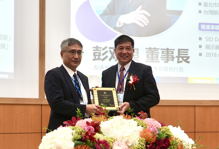 友達董事長彭雙浪獲頒「工業(yè)工程獎?wù)?產(chǎn)業(yè)貢獻獎」 ,由中國工業(yè)工程學(xué)會理事長楊能舒 (左) 頒獎 |