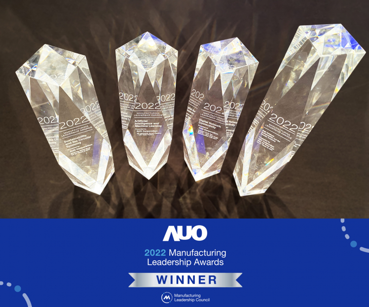AUO today announced that it has been recognized by the Manufacturing Leadership Awards (MLA) in categories of Digital Network Connectivity as well as AI and Machine Learning, and especially honored the High Achiever in Sustainability and the Circular Economy category by the National Association of Manufacturers (NAM) in the US. Drawing up on its years of experience in smart manufacturing and digital transformation, AUO combined AIoT, digital IoT and data analytics technologies to build a machine doctor for carrying a comprehensive health exam of factories. Appling its wealth of green manufacturing expertise to transform old factories into sustainable smart factories, AUO successfully won the international recognitions.
