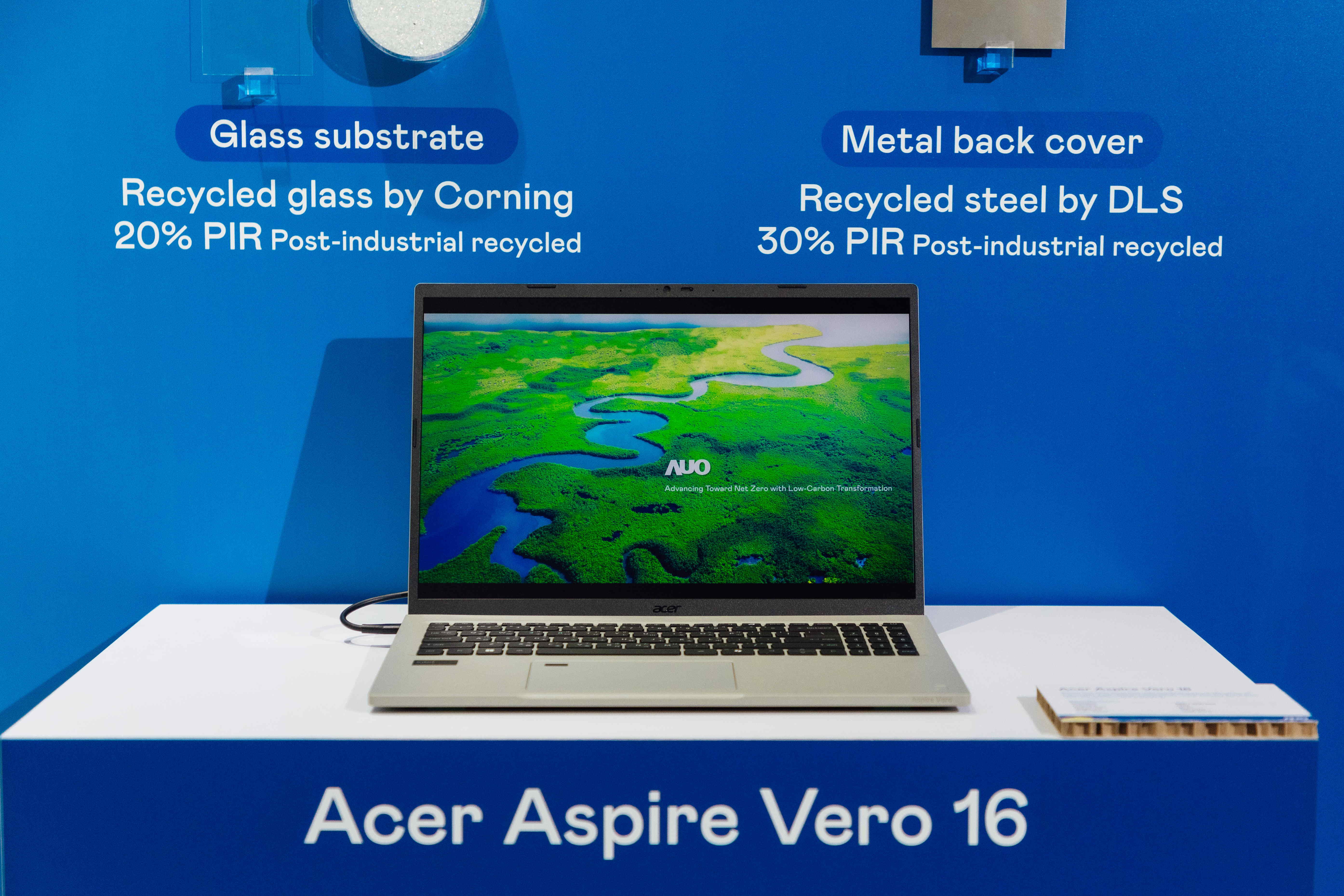 全球首款筆記型電腦采用申博太陽城100%綠電制造的面板 ,結(jié)合PCR外亦使用工業(yè)后回收材料(PIR),例如回收玻璃和金屬,減少對環(huán)境的影響 。
