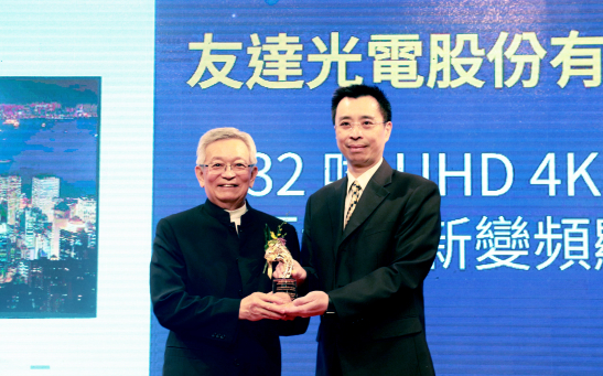 友達(dá)榮獲 2019 年中科優(yōu)良廠商創(chuàng)新產(chǎn)品獎(jiǎng),由友達(dá)產(chǎn)品開發(fā)總部副總經(jīng)理洪泓杰 (右) 代表領(lǐng)獎(jiǎng)