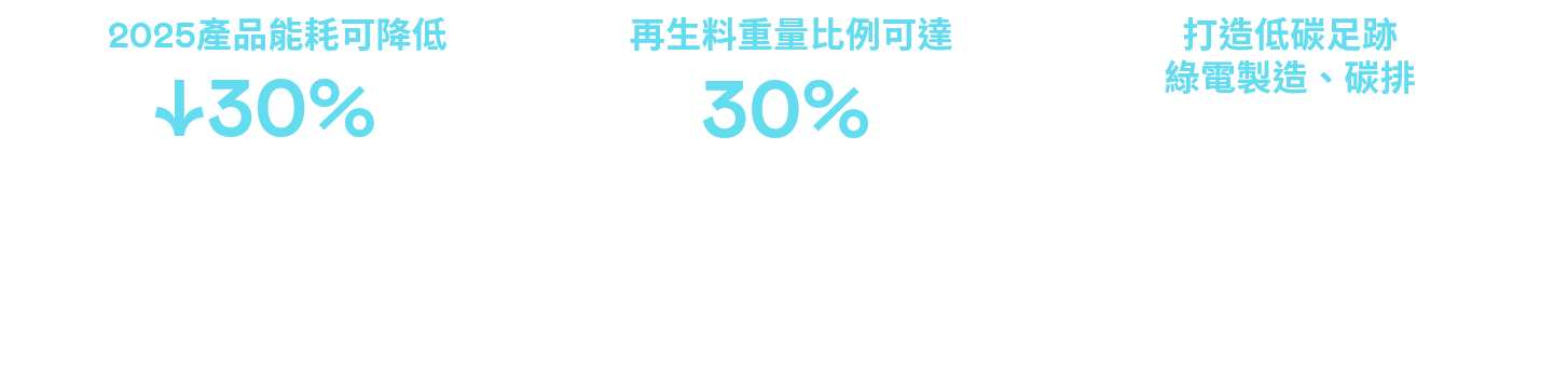 透過降低能耗 、循環(huán)再生料與包材回收方式 ,投入更先進(jìn)的研發(fā)能量,開拓綠色產(chǎn)品的市場(chǎng)與客戶合作共同推廣綠色價(jià)值觀,凝聚綠色溢價(jià)的減碳目標(biāo) 。
